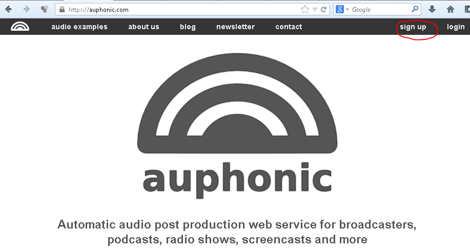 Auphonic 1 sign up.PNG 2013-10-19 11:22 47K